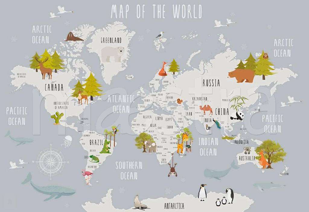 Бесшовные обои на стену: Карта на сером фоне. Артикул: 15-085