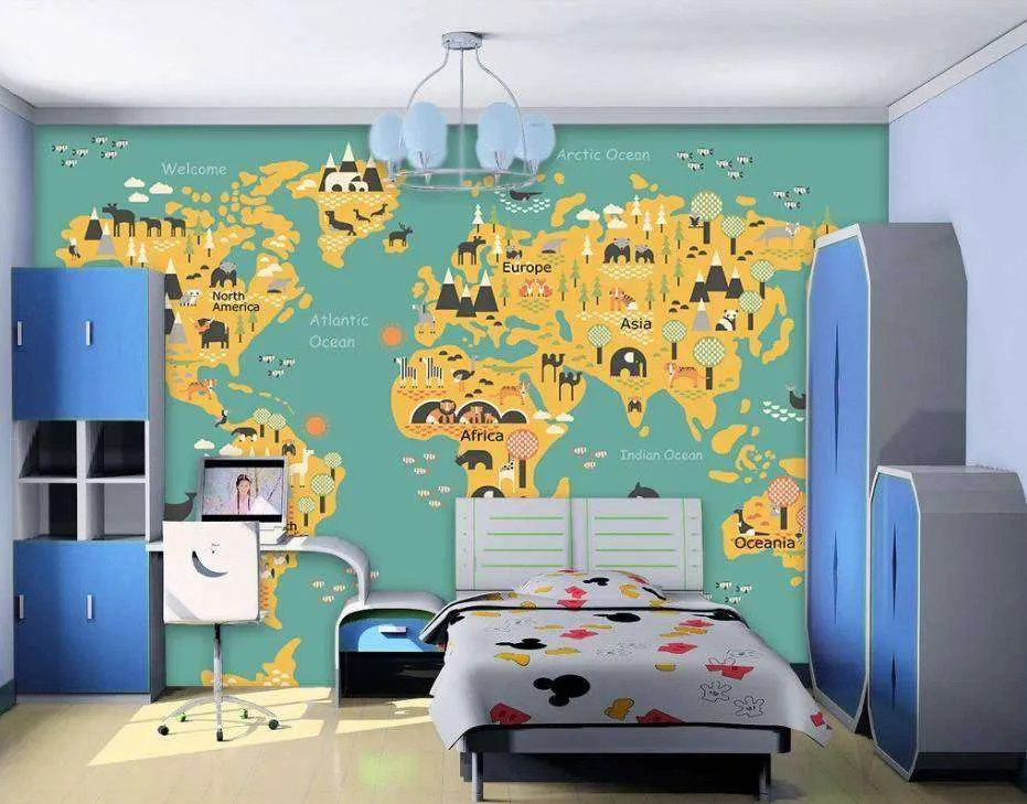 Бесшовные обои на стену: Карта с животными желтая. Артикул: 15-099