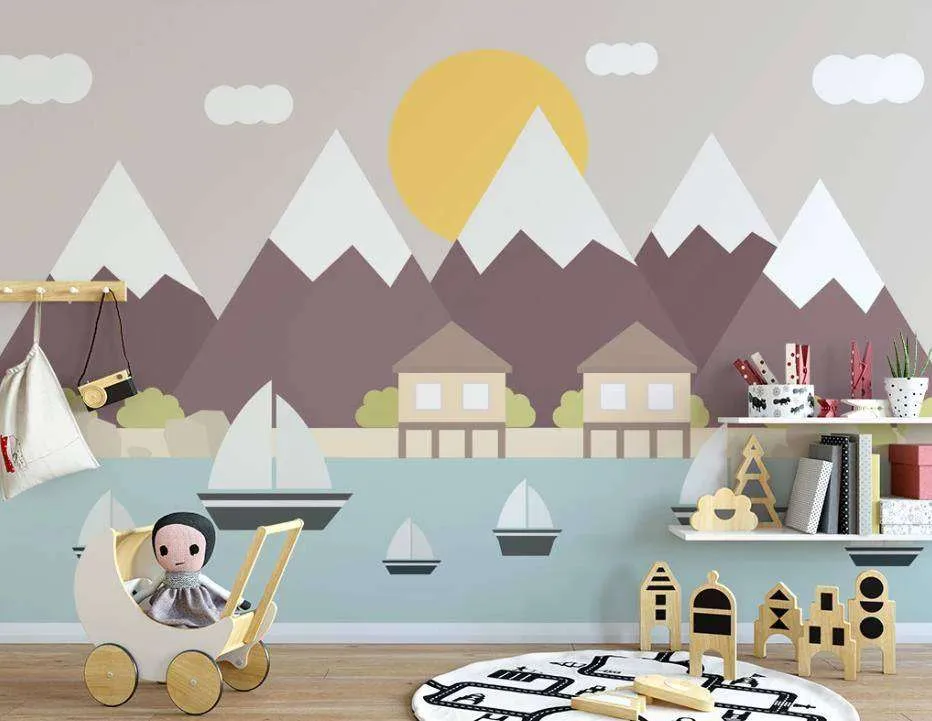 Бесшовные обои на стену: Кораблики на фоне гор. Артикул: 15-170