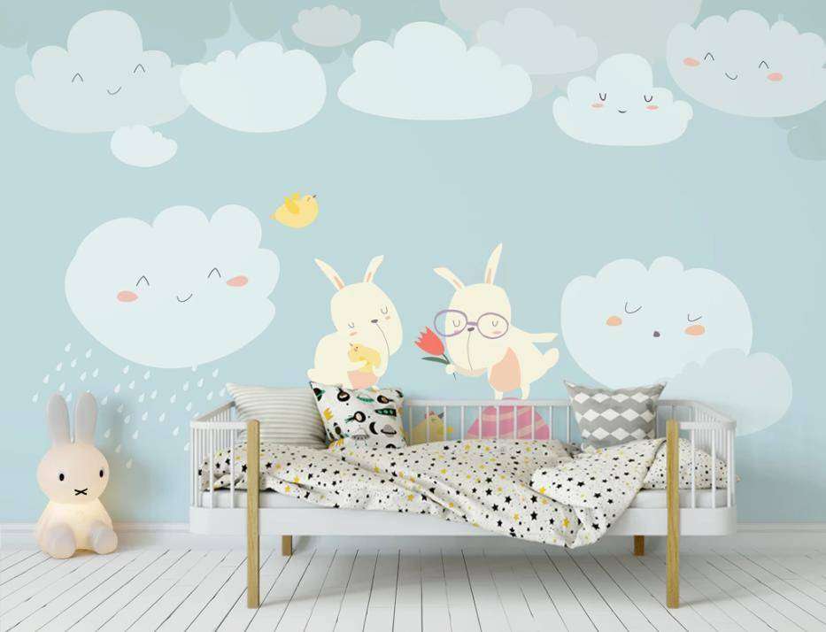 Бесшовные обои на стену: Зайки в облаках. Артикул: 15-173