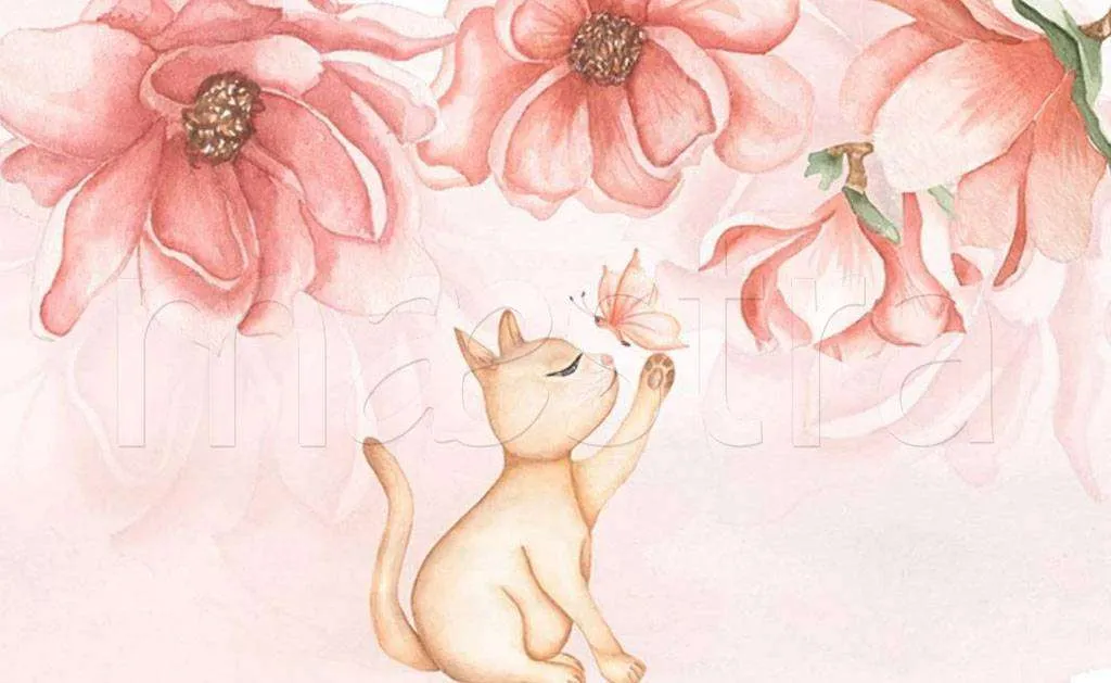 Бесшовные обои на стену: Кошечка в цветочках. Артикул: 15-197