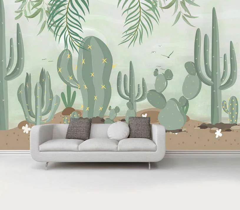Бесшовные обои на стену: Кактусовый сад. Артикул: 15-217
