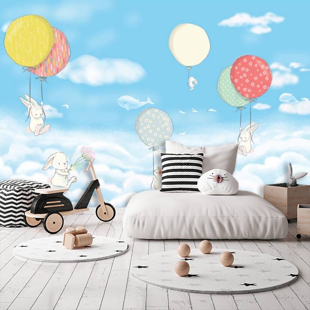 Бесшовные обои на стену: Воздушные шарики в облаках. Артикул: 15-300