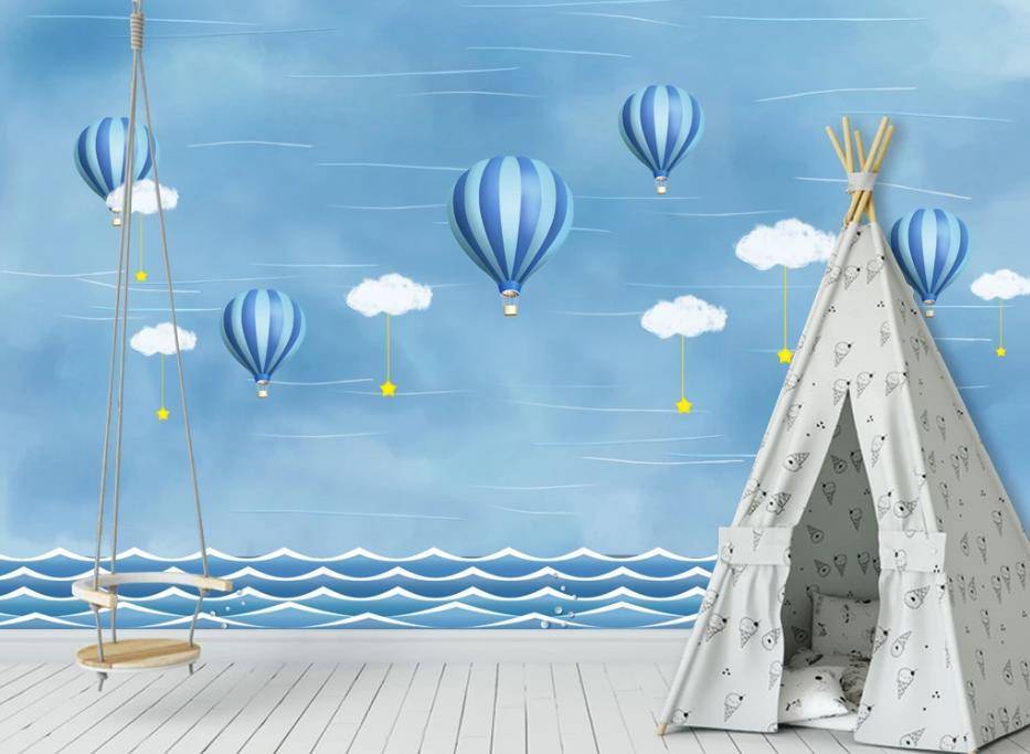 Бесшовные обои на стену: Синие воздушные шары в небе. Артикул: 15-317