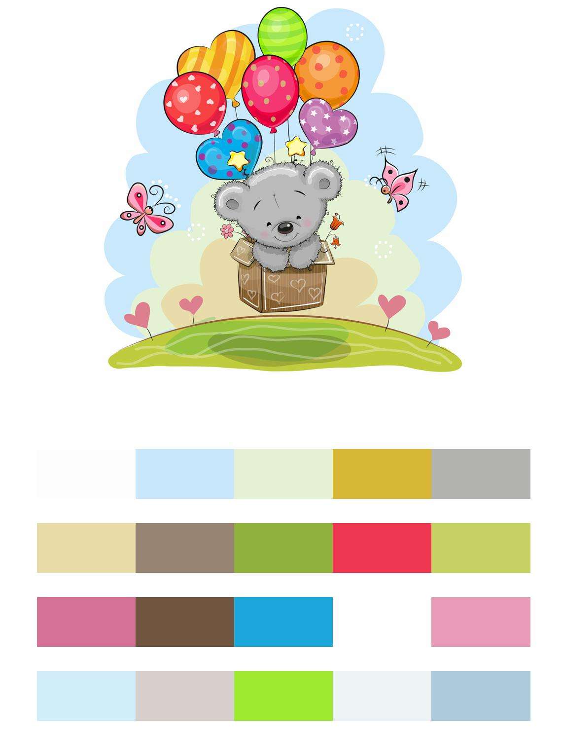 Бесшовные обои на стену: Мишка на воздушном шаре. Артикул: 9-229