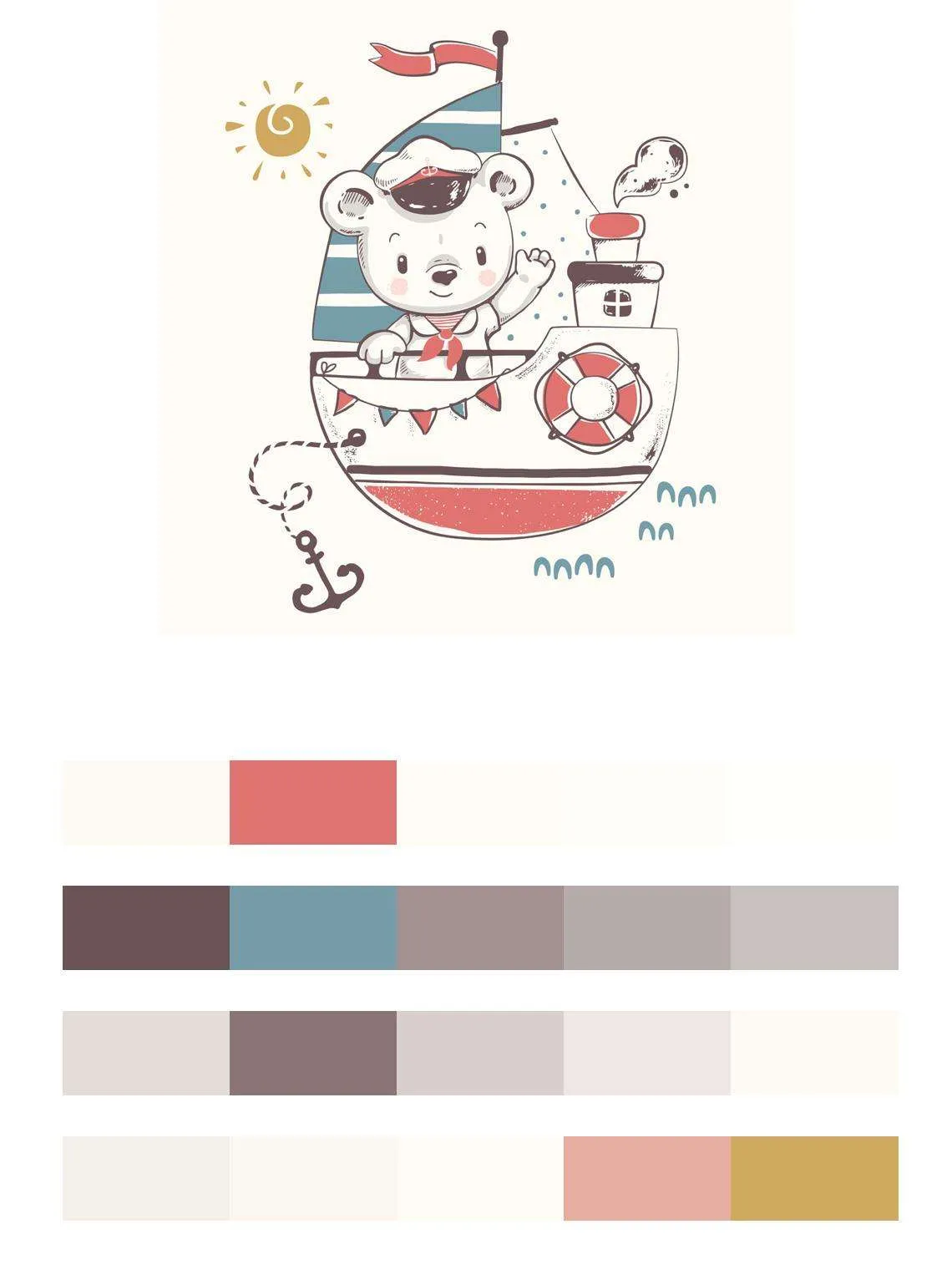 Бесшовные обои на стену: Мишка на кораблике. Артикул: 9-230