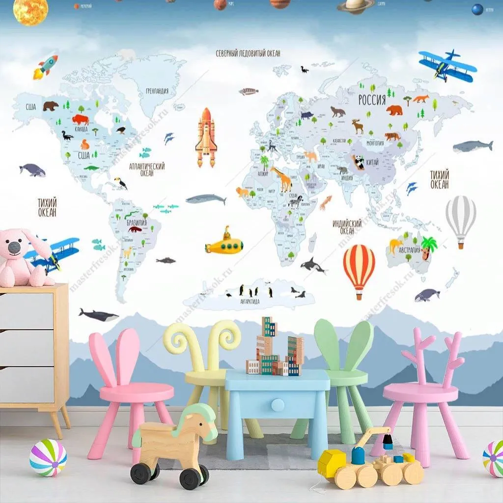 Карта мира с горами и планетами Арт. 12-1184