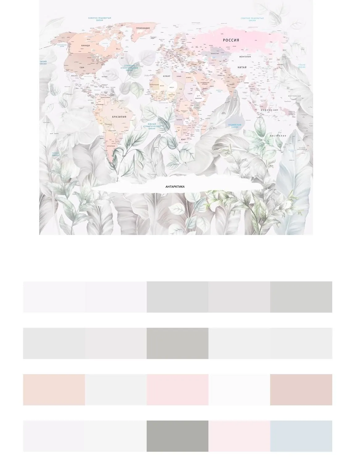 Бесшовные обои на стену: Карта мира на фоне листьев. Артикул: 13-574
