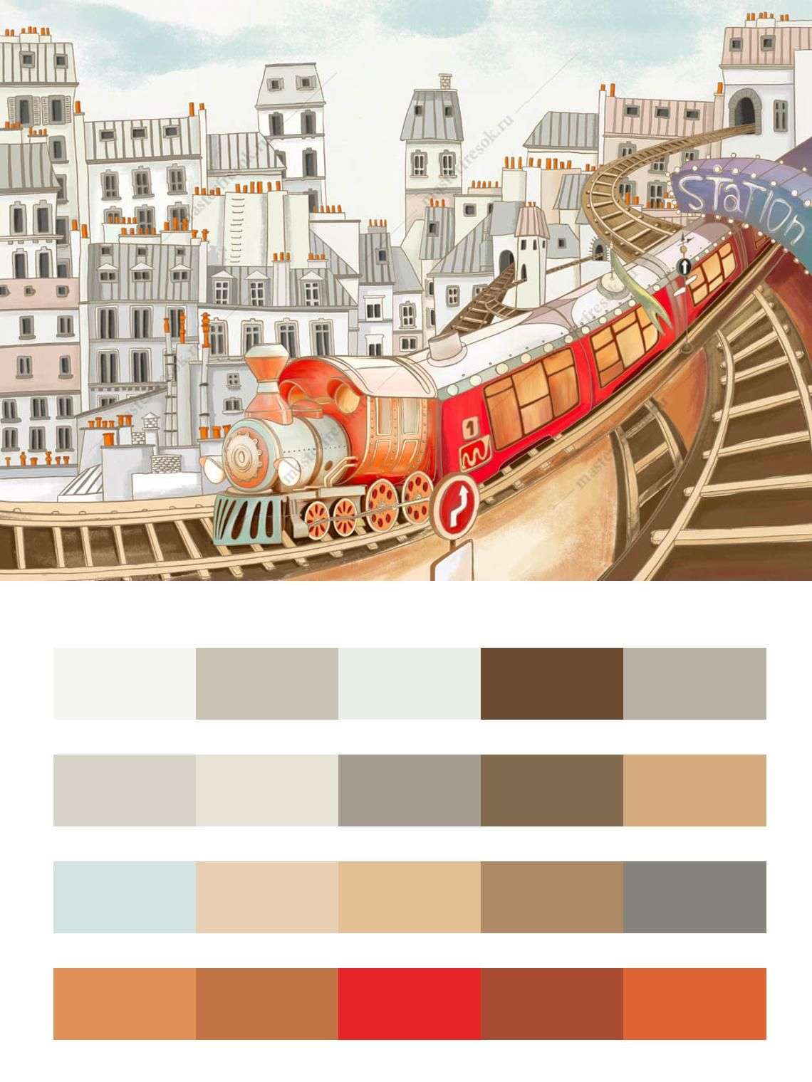 Бесшовные обои на стену: Поезд в городе. Артикул: 12-1372