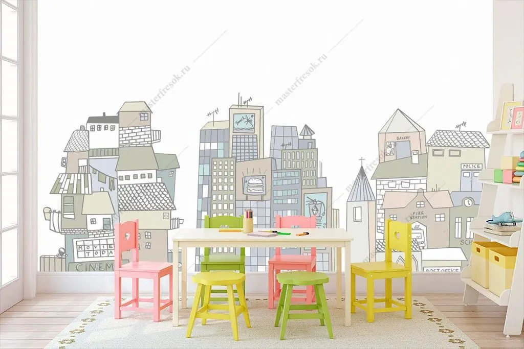 Бесшовные обои на стену: Домики. Артикул: 14-219