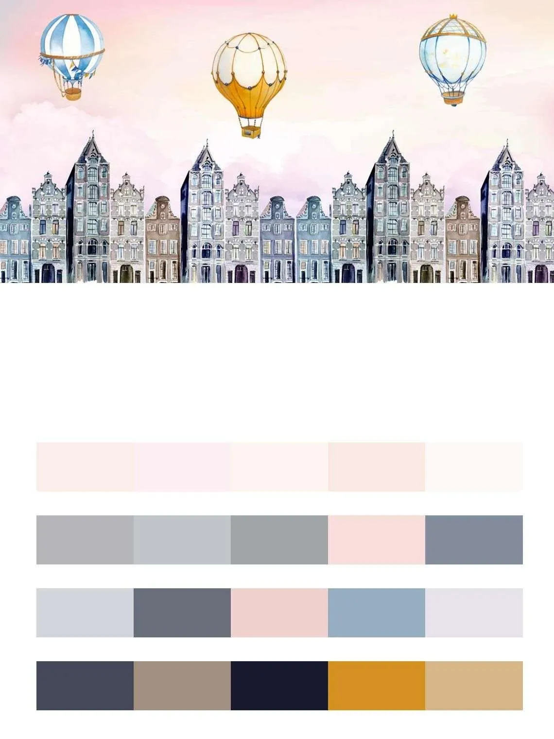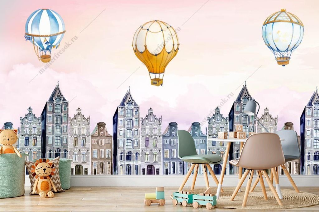 Бесшовные обои на стену: Воздушные шарики над городом. Артикул: 14-258