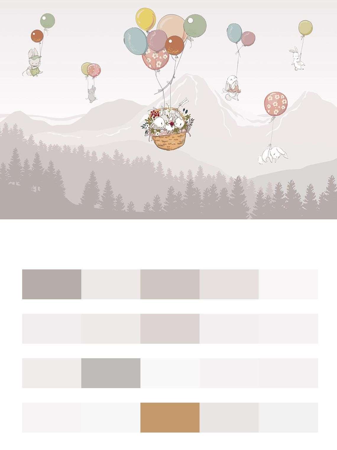 Бесшовные обои на стену: Зайчики на шариках в горах. Артикул: 14-075