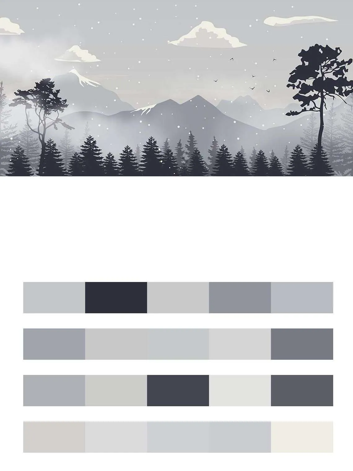 Бесшовные обои на стену: Горы в тумане за лесом. Артикул: 14-348