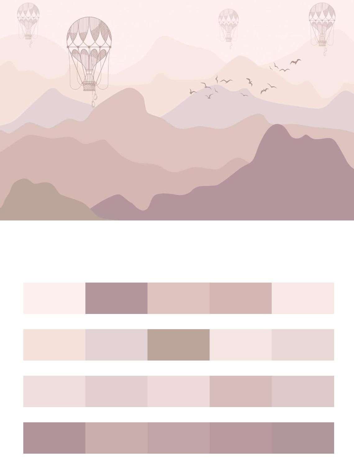 Бесшовные обои на стену: Розовые горы с шарами. Артикул: 14-354