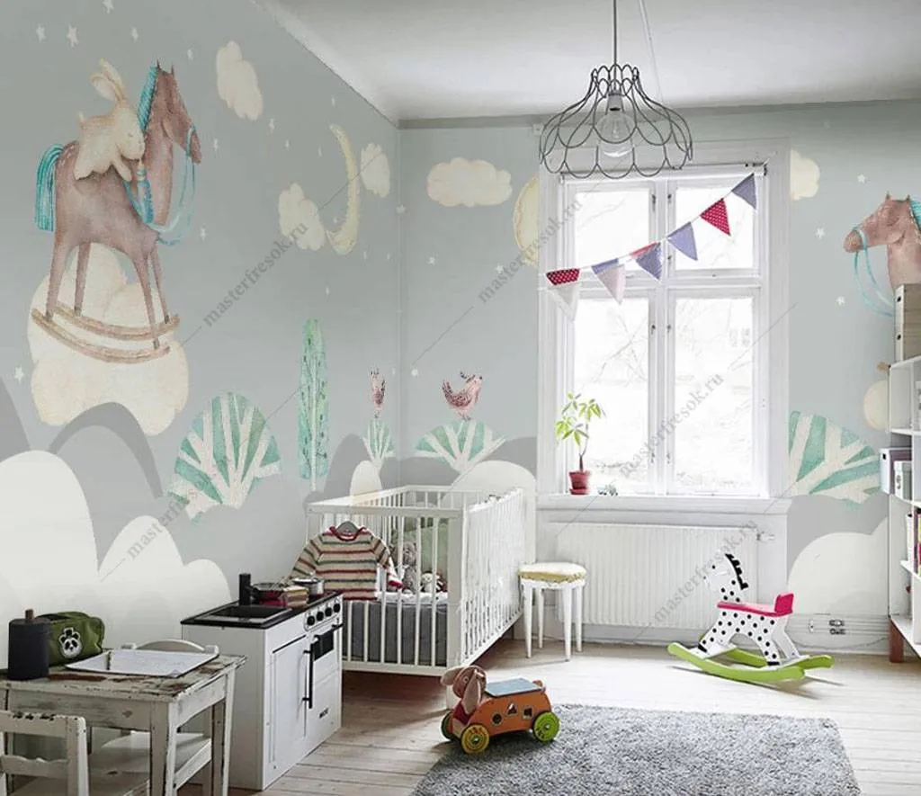 Бесшовные обои на стену: Лошадка в облаках. Артикул: 15-878