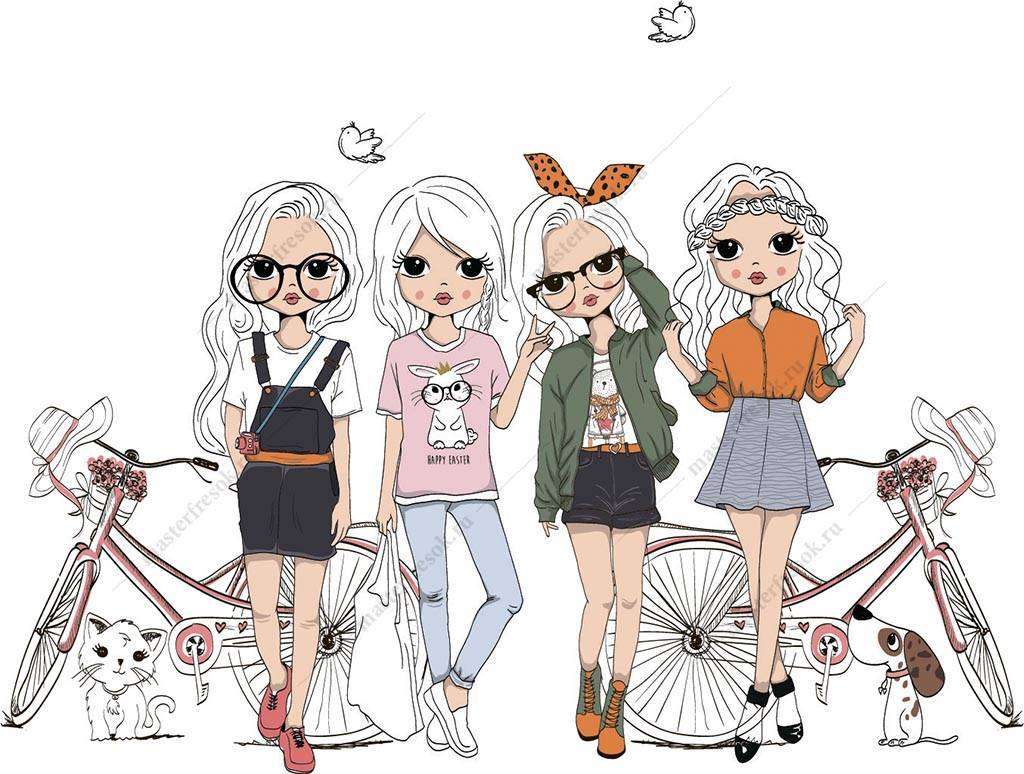 Бесшовные обои на стену: Модные подружки. Артикул: 12-1131