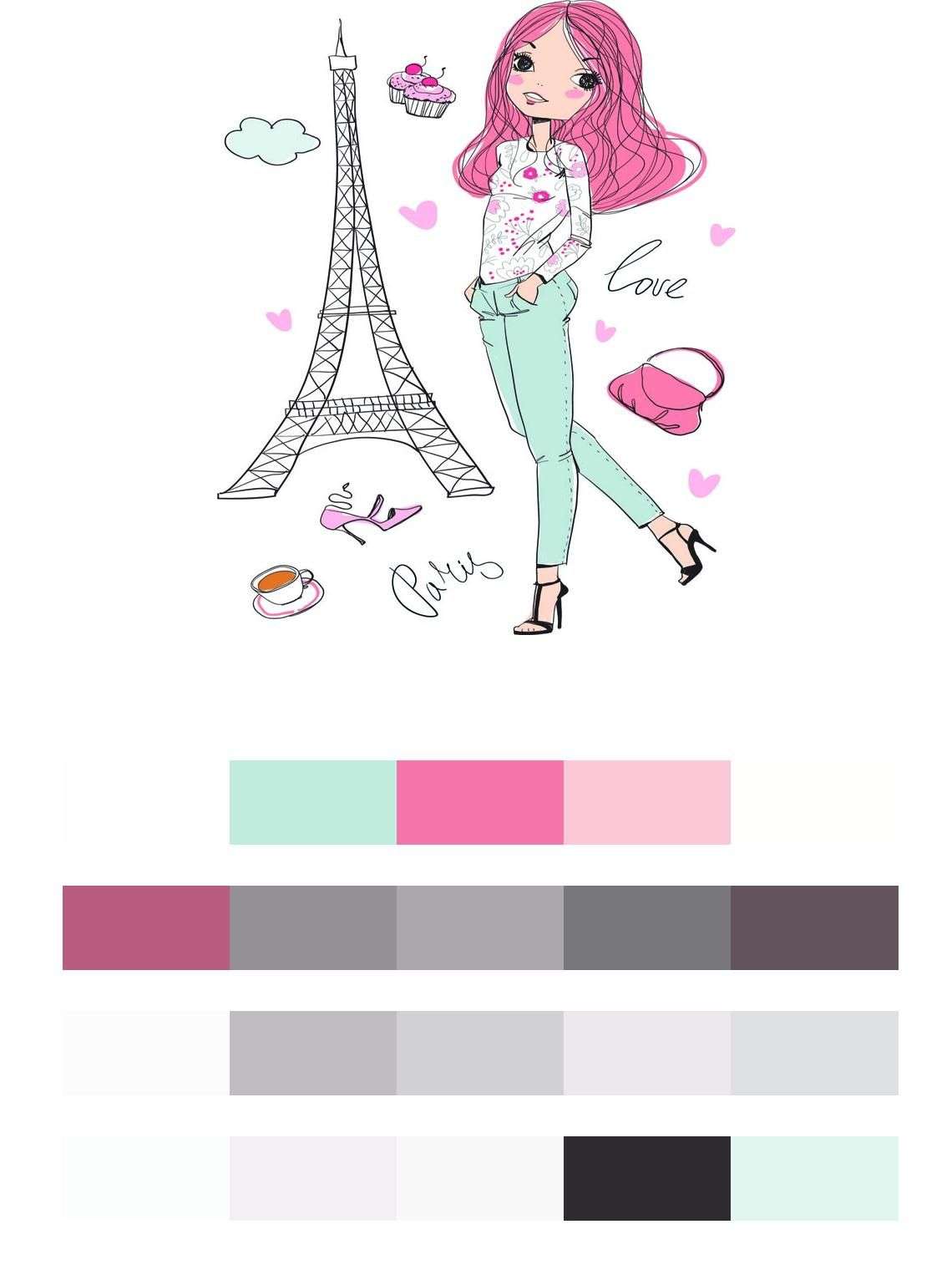 Бесшовные обои на стену: Милая девочка париж. Артикул: 12-1255