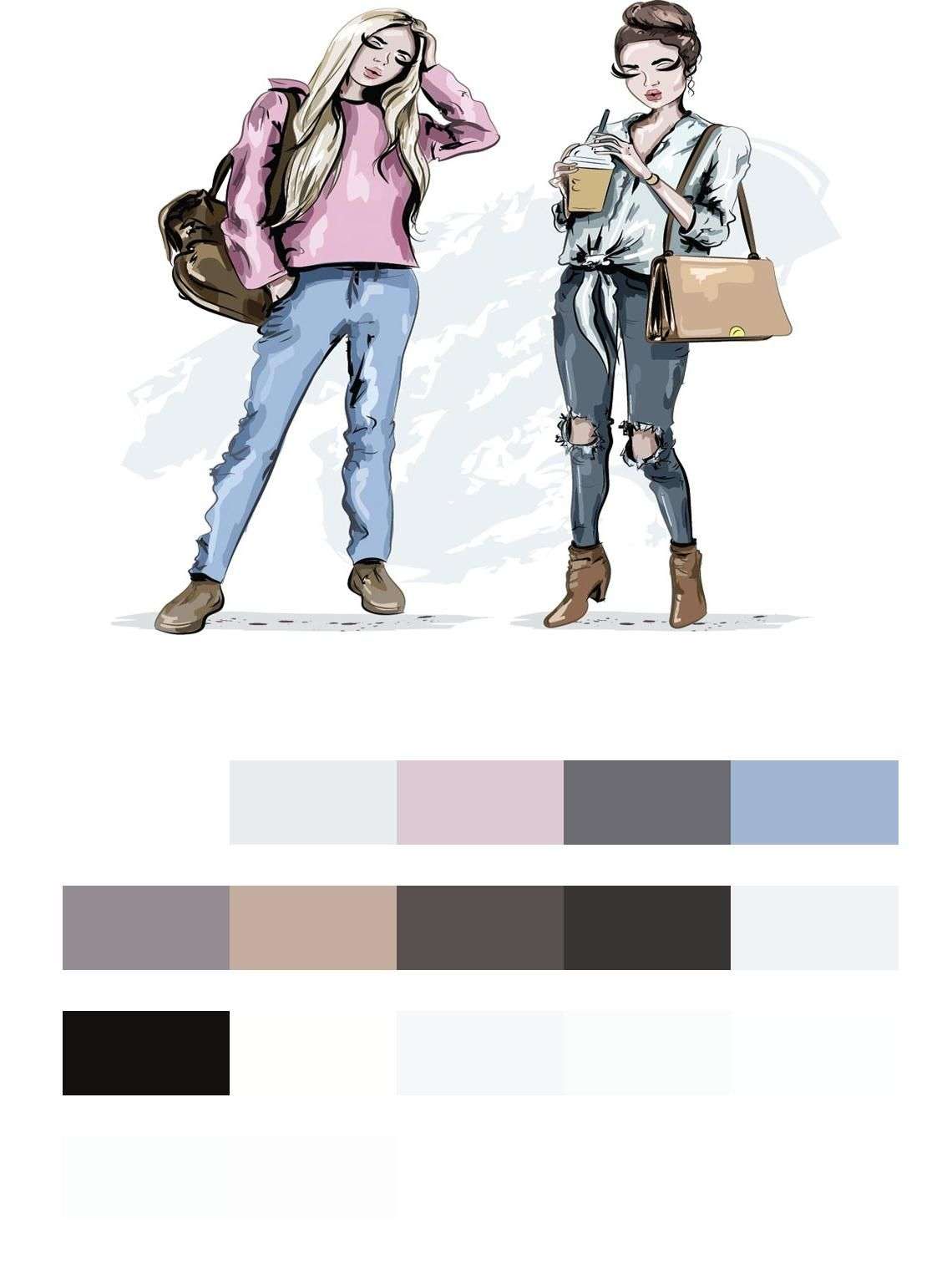 Бесшовные обои на стену: Модные подружки. Артикул: 12-1381