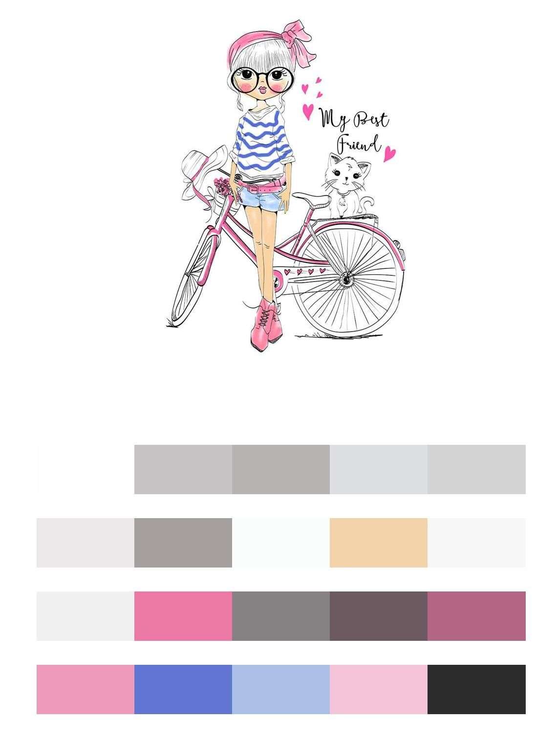 Бесшовные обои на стену: Модная девочка с велосипедом. Артикул: 12-1442