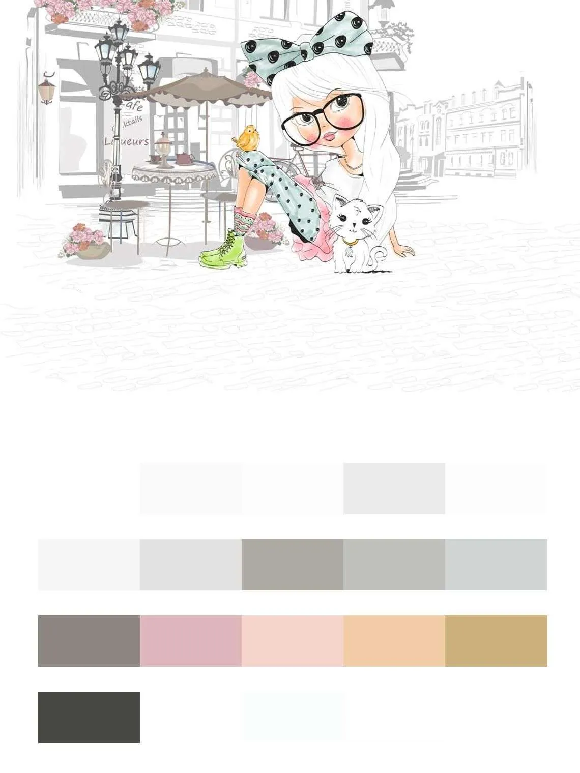 Бесшовные обои на стену: Модная девочка в кафе. Артикул: 14-274