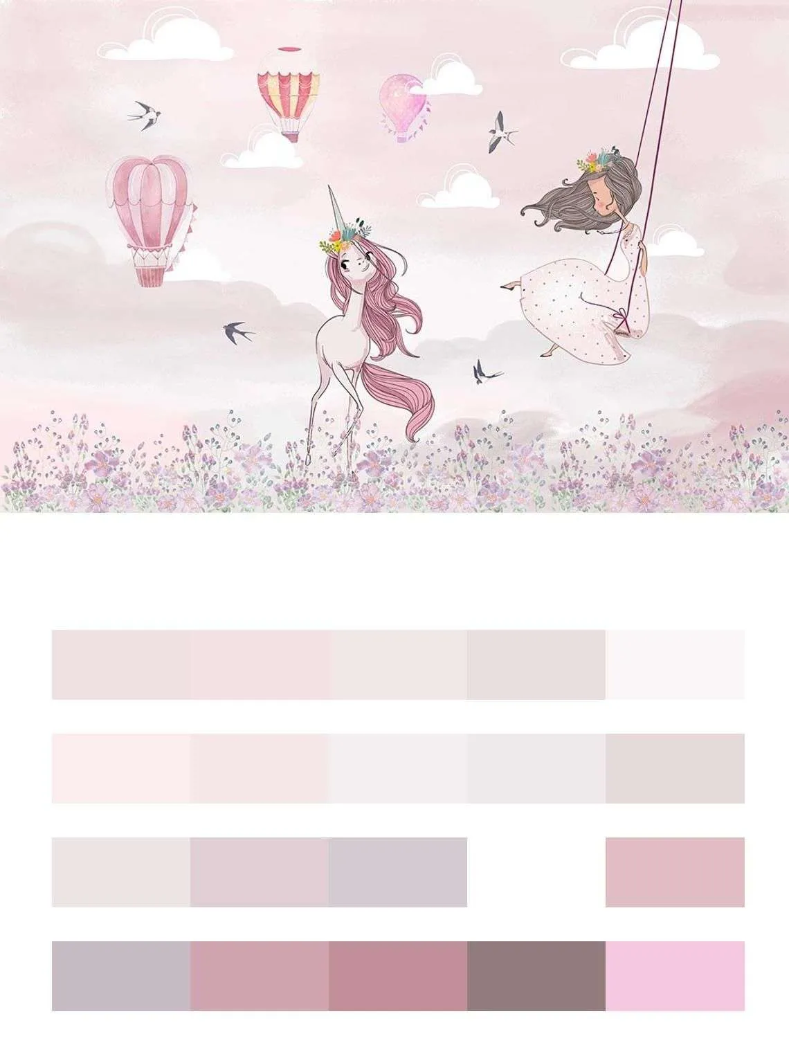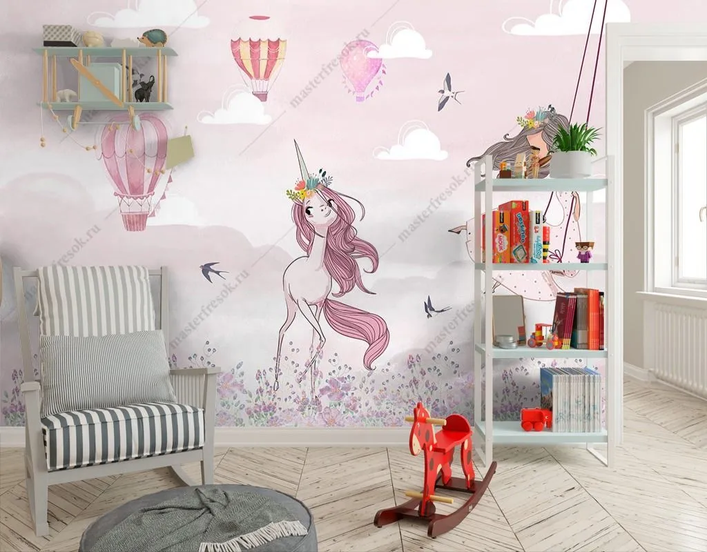Бесшовные обои на стену: Единорожек и принцесса. Артикул: 14-441