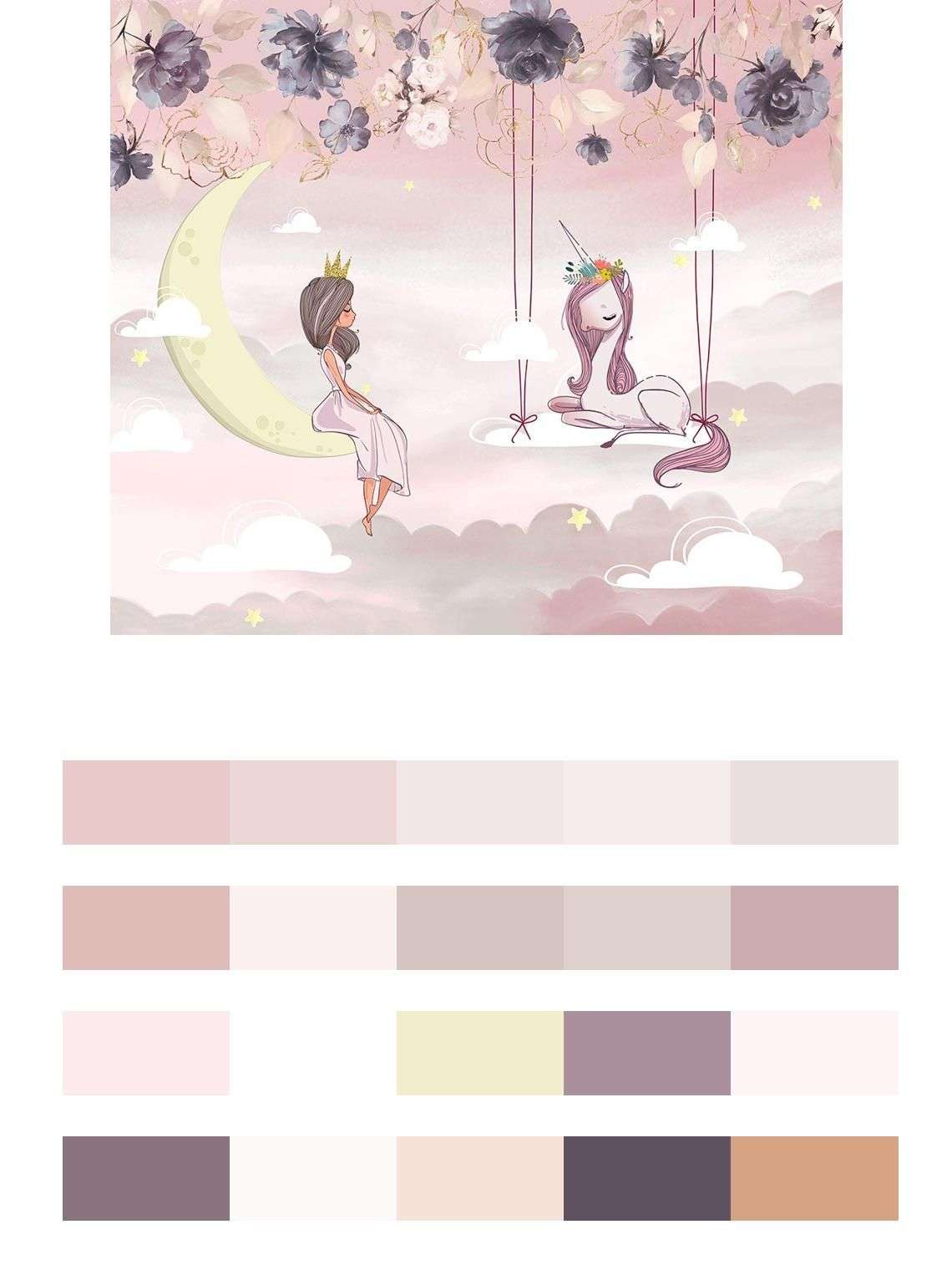 Бесшовные обои на стену: Фея в облаках с единорогом. Артикул: 14-444
