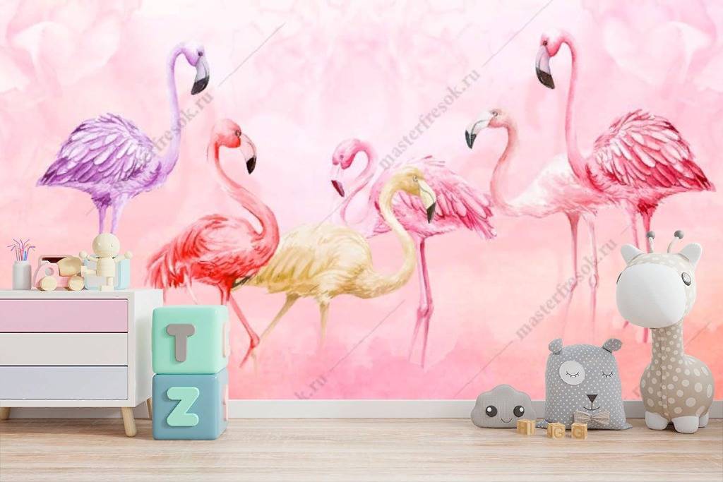 Бесшовные обои на стену: Фламинго на розовом фоне. Артикул: 12-1204