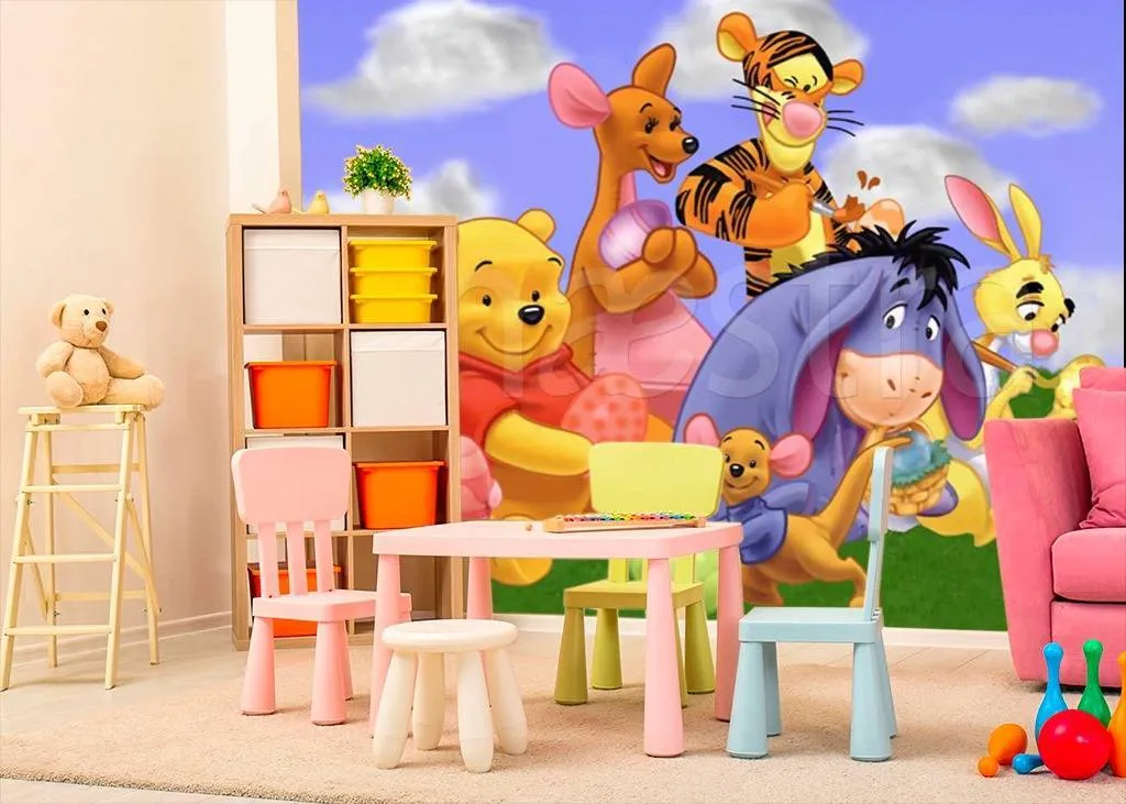 Бесшовные обои на стену: Винни пух, тигра и пятачок. Артикул: 12-266
