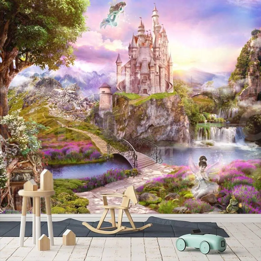 Бесшовные обои на стену: Сказочные феи у замка. Артикул: 12-320