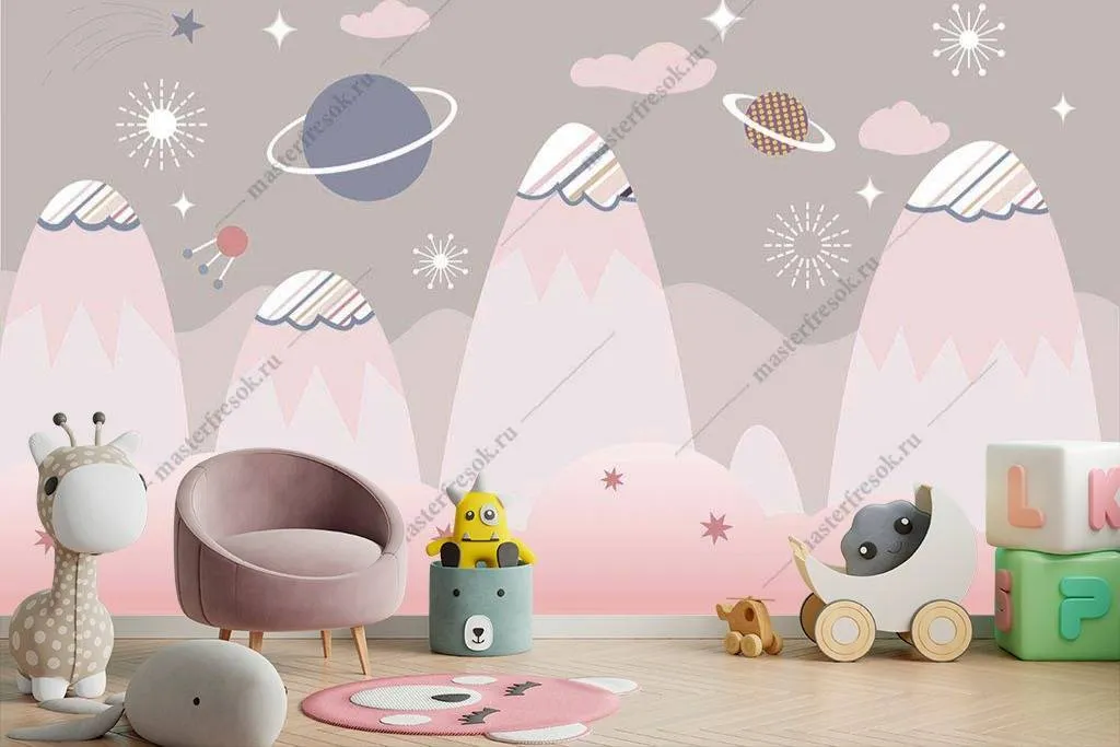 Бесшовные обои на стену: Планеты в горах. Артикул: 14-034