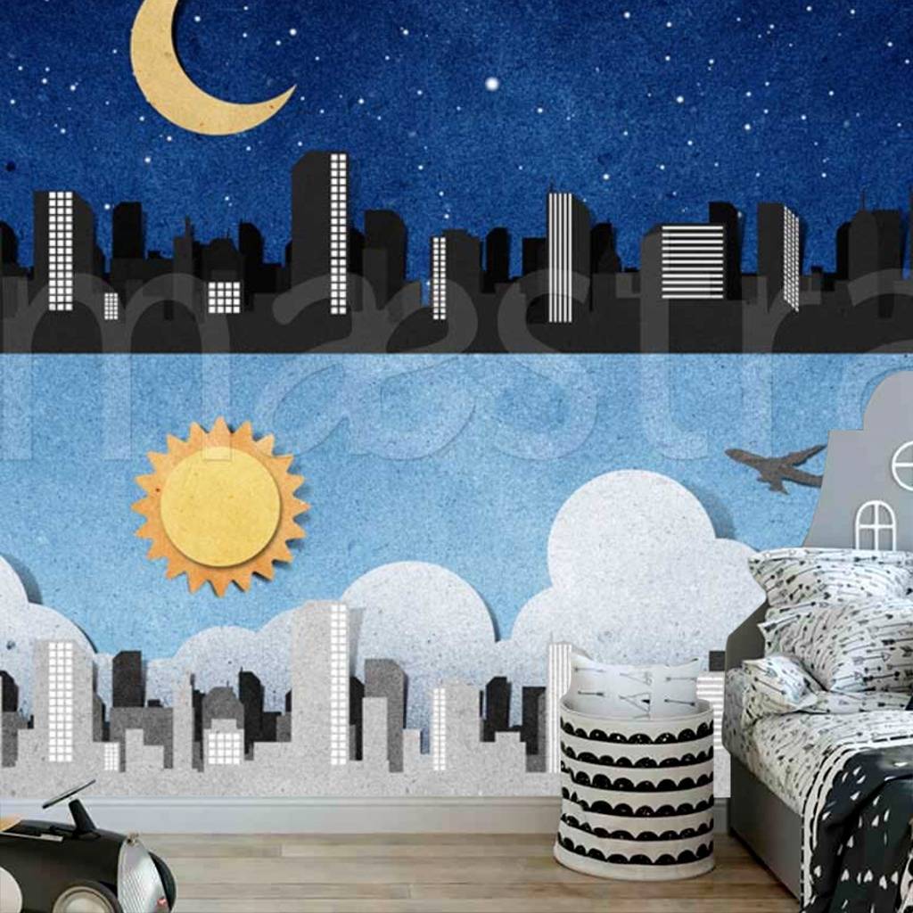 Бесшовные обои на стену: День и ночь в городе. Артикул: 12-323