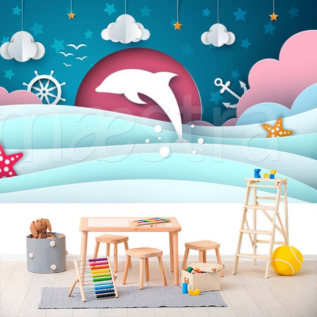 Бесшовные обои на стену: Дельфин плывет в море. Артикул: 12-374
