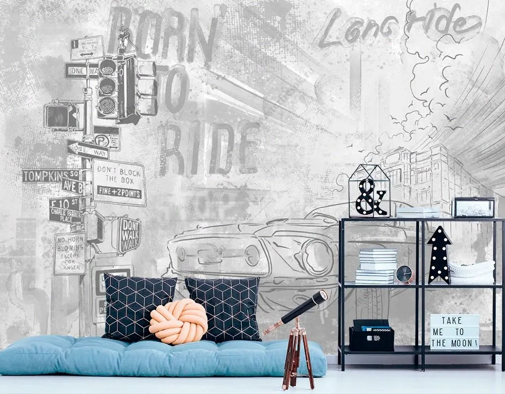 Бесшовные обои на стену: Машина в городе. Артикул: 12-1436