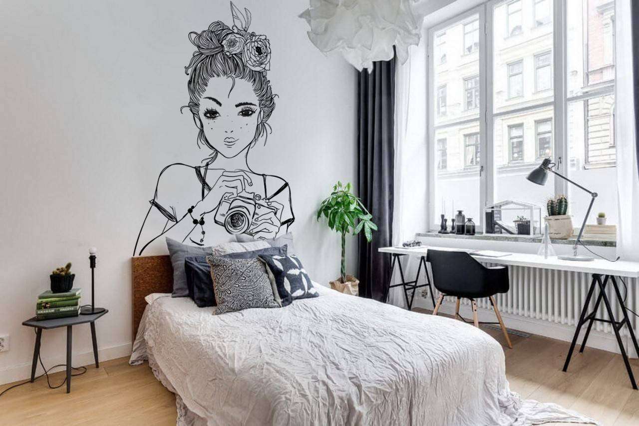 Бесшовные обои на стену: Девушка-фотограф. Артикул: 12-630