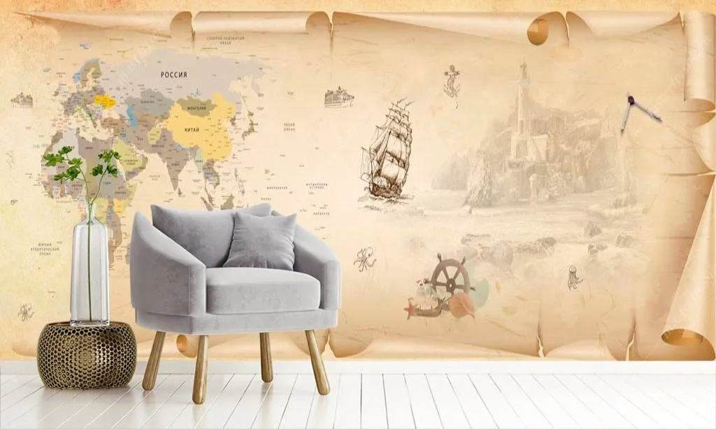 Бесшовные обои на стену: Карта морского путешественника. Артикул: 13-103