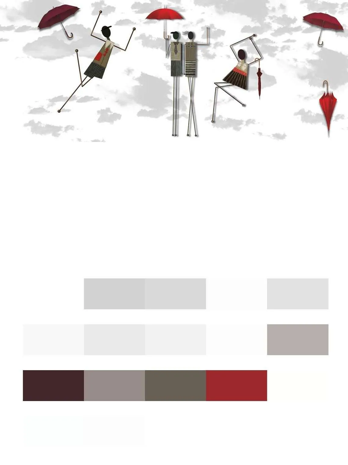 Бесшовные обои на стену: Красные зонтики. Артикул: 14-164