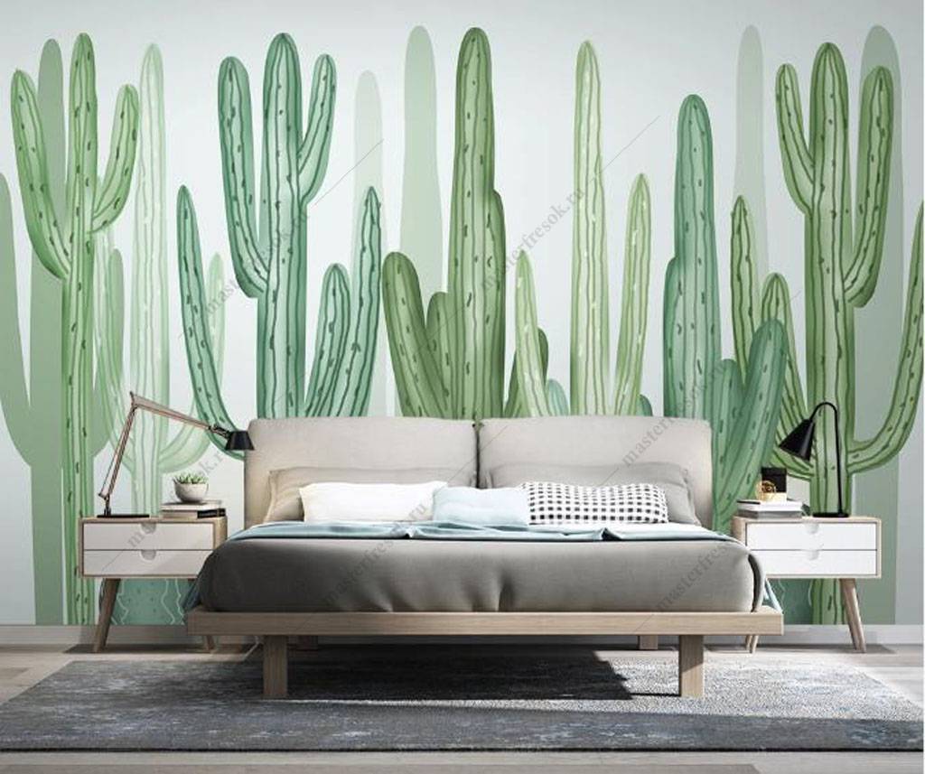 Бесшовные обои на стену: Зеленые кактусы. Артикул: 16-115