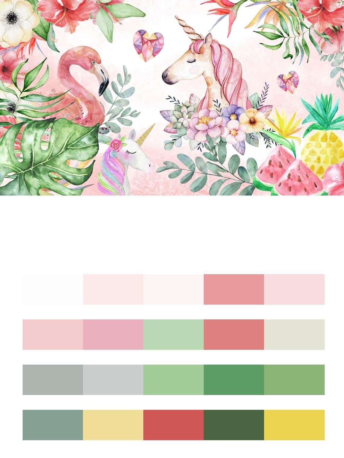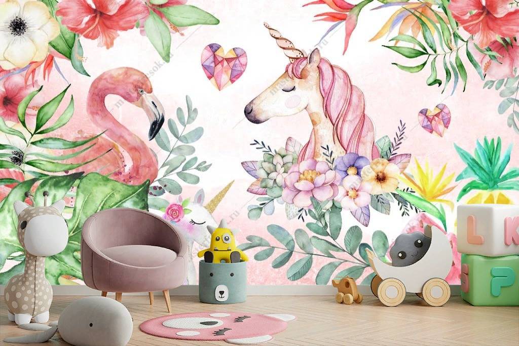 Бесшовные обои на стену: Фламинго и единорог. Артикул: 12-1207