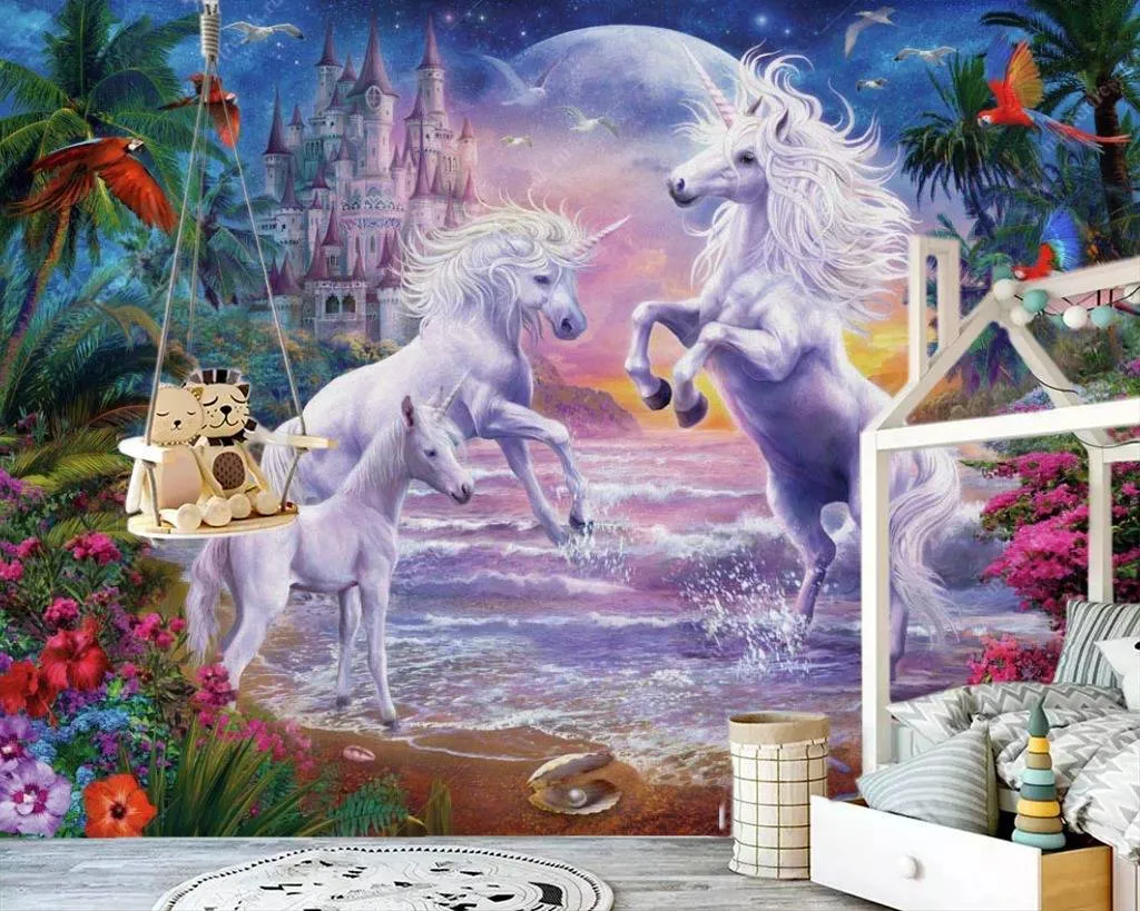 Бесшовные обои на стену: Единороги у моря. Артикул: 8-319