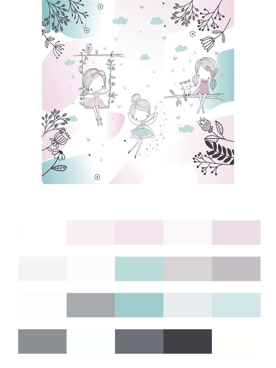 Бесшовные обои на стену: Три феи на прогулке. Артикул: 14-639