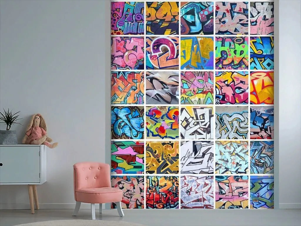 Бесшовные обои на стену: Коллаж граффити в цвете. Артикул: 12-1577