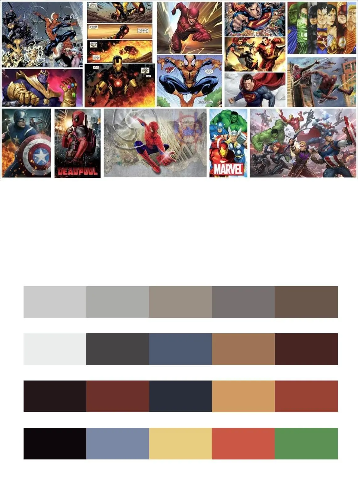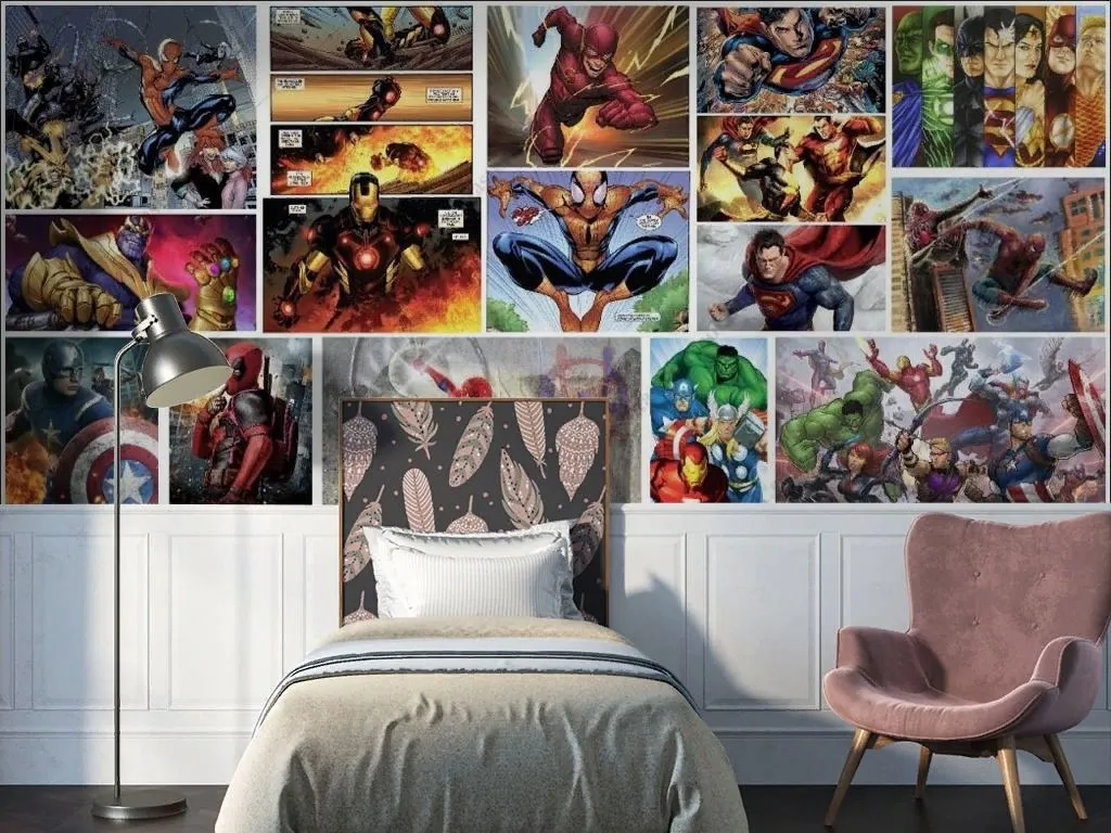 Бесшовные обои на стену: Комиксы коллаж супергерои. Артикул: 12-1581