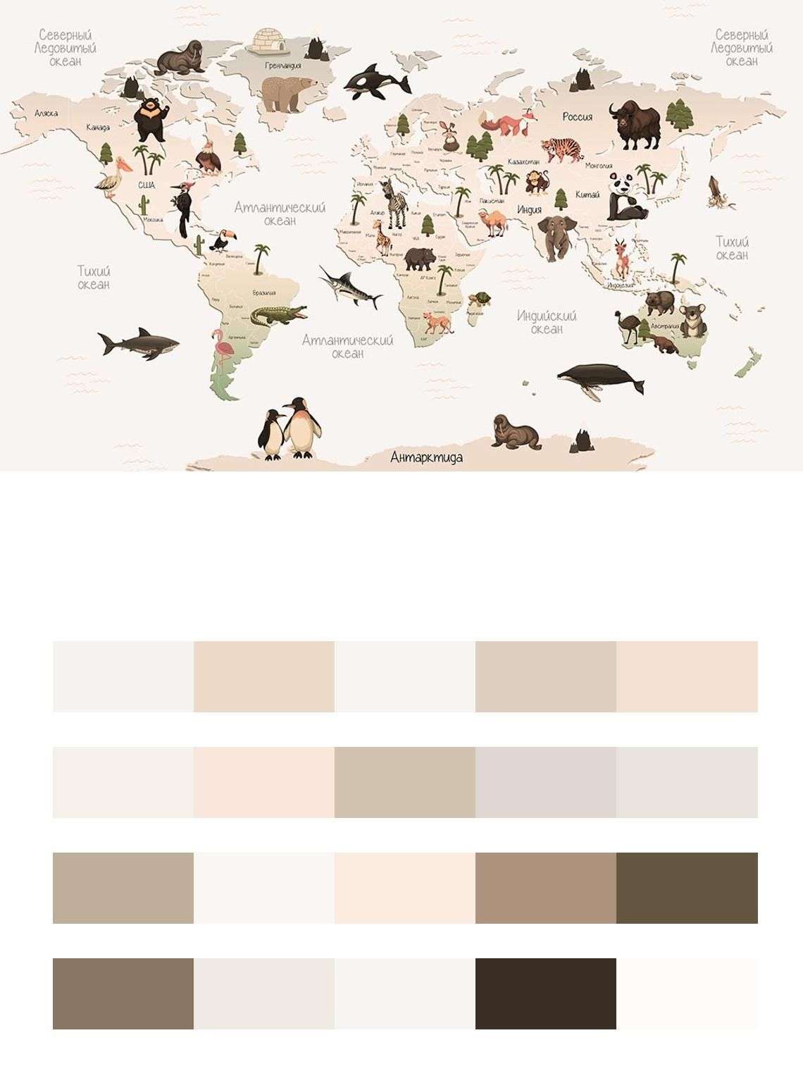 Бесшовные обои на стену: Светлая карта мира. Артикул: 12-1151