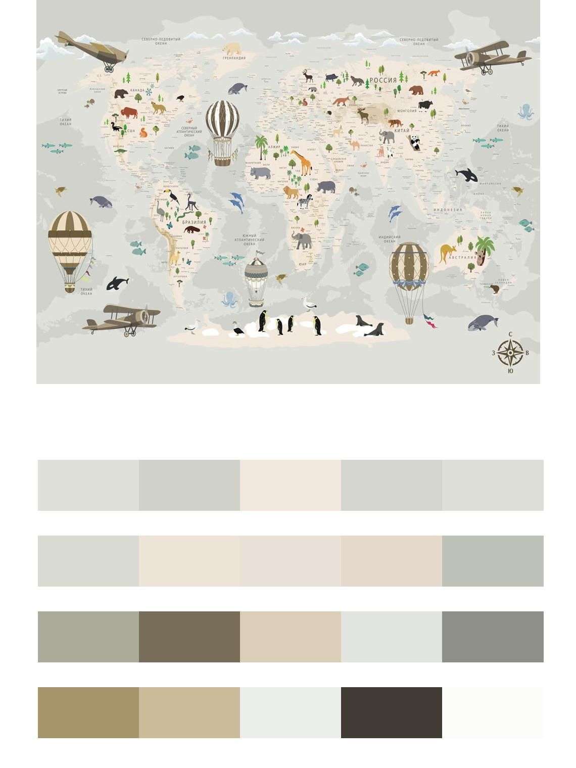 Бесшовные обои на стену: Карта мира с морскими жителями. Артикул: 12-1187