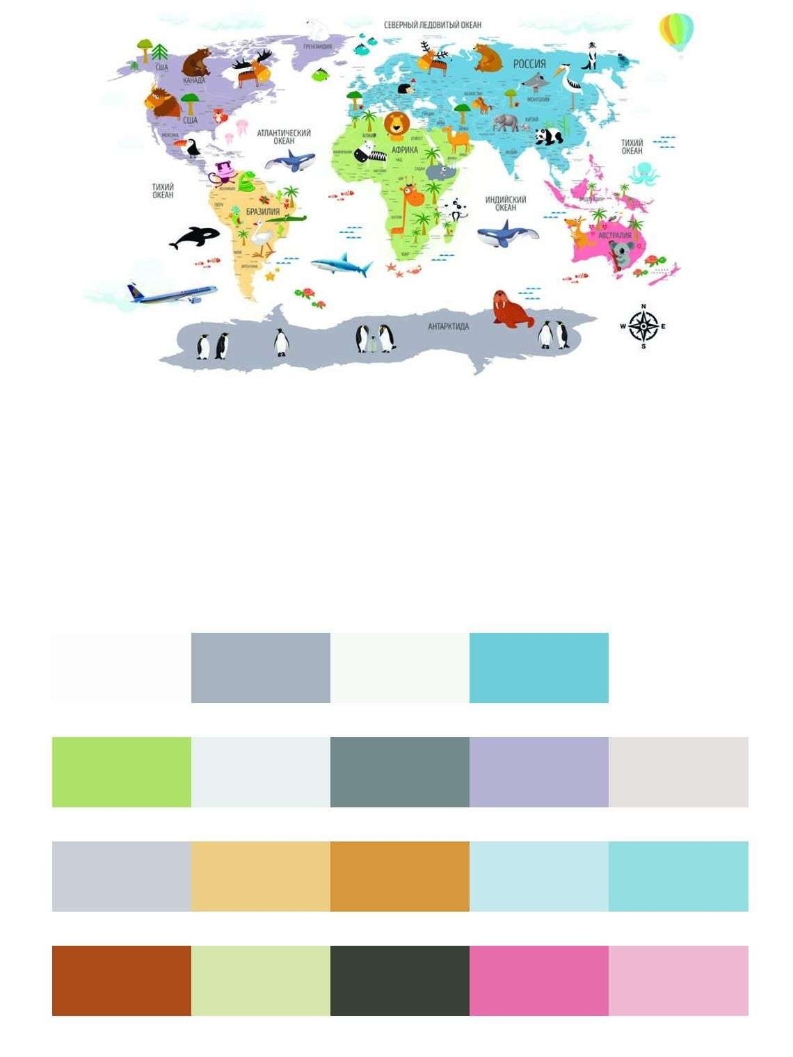 Бесшовные обои на стену: Карта мира для малышей. Артикул: 12-1189