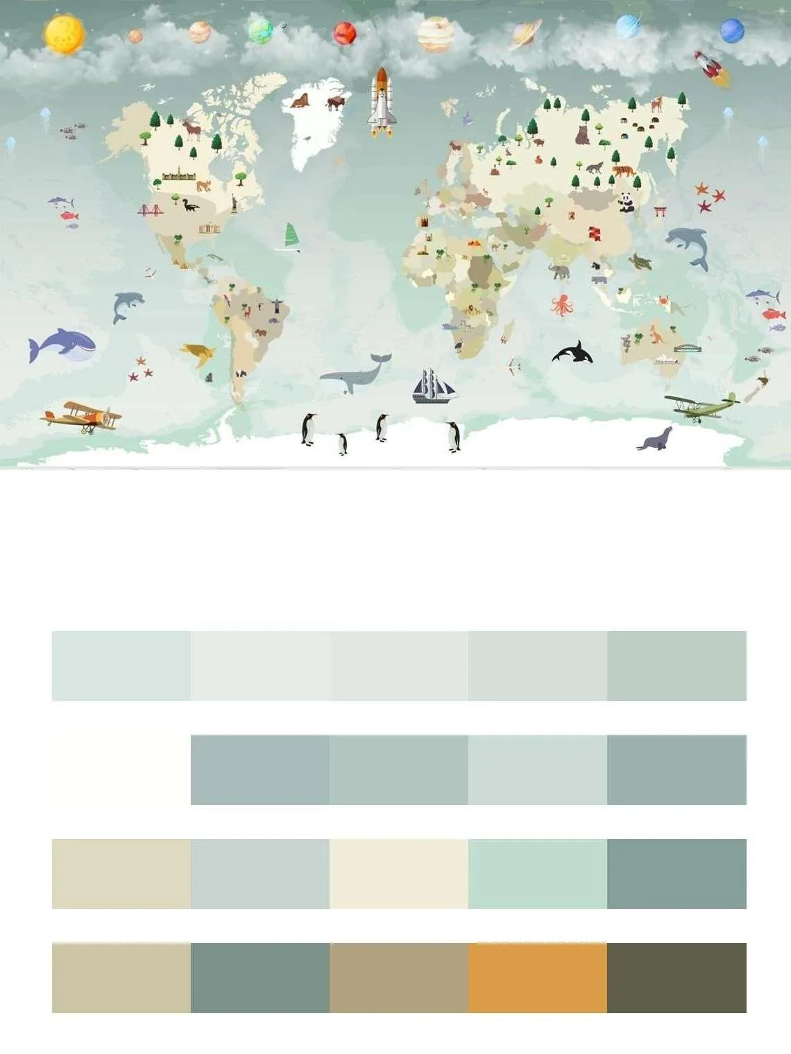 Бесшовные обои на стену: Карта с планетами и животными в детскую. Артикул: 12-1513