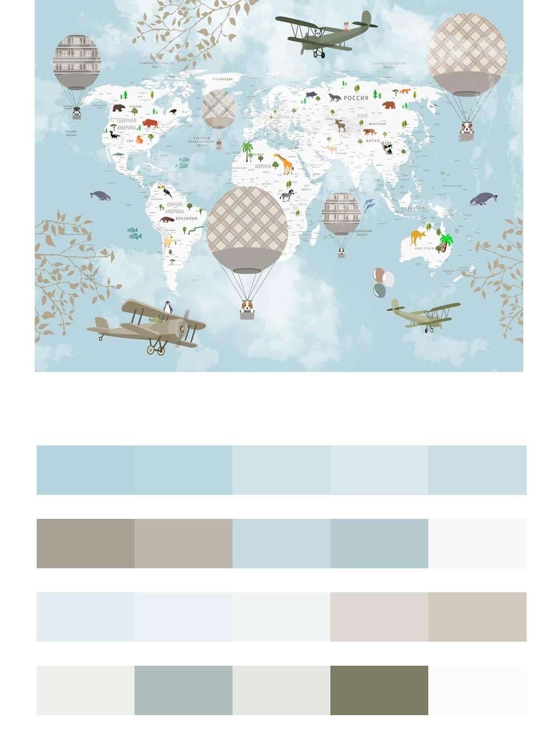 Бесшовные обои на стену: Самолеты и карта мира. Артикул: 14-180