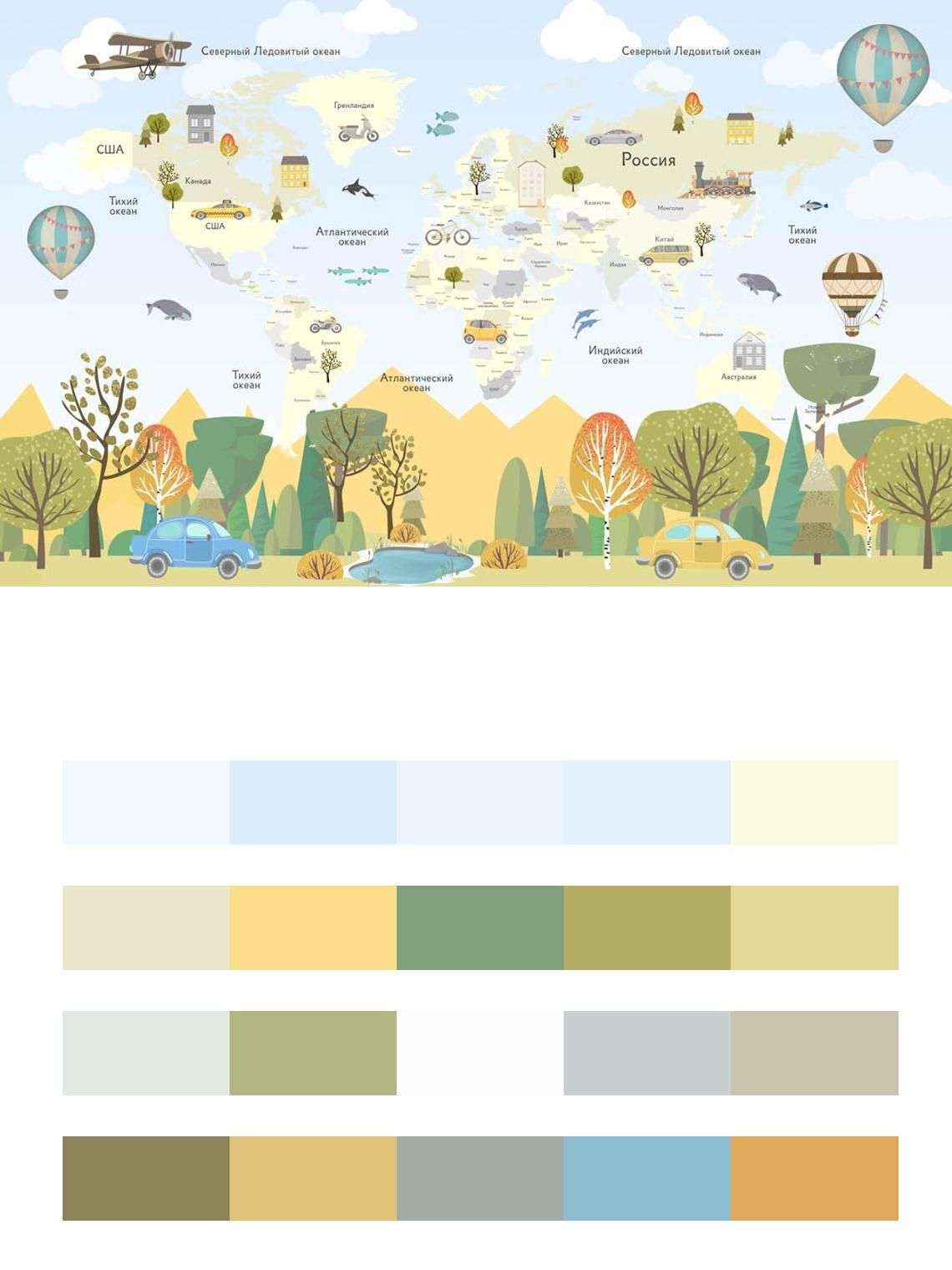 Бесшовные обои на стену: Карта для детей с лесом. Артикул: 14-256