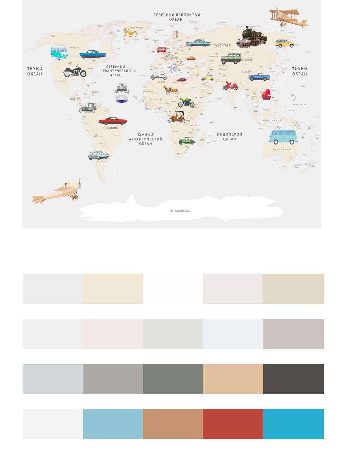Бесшовные обои на стену: Детская карта мира с машинками. Артикул: 14-285