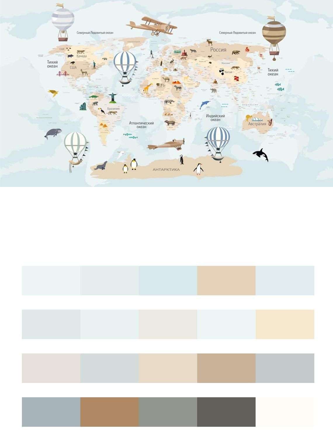 Бесшовные обои на стену: Карта мира на русском. Артикул: 14-289